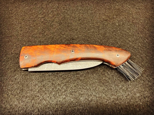 2209 - Pilzmesser. 120 Lagendamast „kleine Rosen“, 70 mm, 63 HRc, 145 Bess, Titanlinerlock, 120mm, Bürste, Nussbaum geölt.
