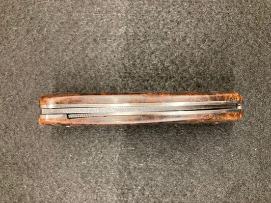 2207 - Klappmesser mit Spiegeldamast und Trüffelbuche. Linerlock, Titanliner Gr5, 100 mm, Klinge 75 mm, HRc 59, 120 Bess
